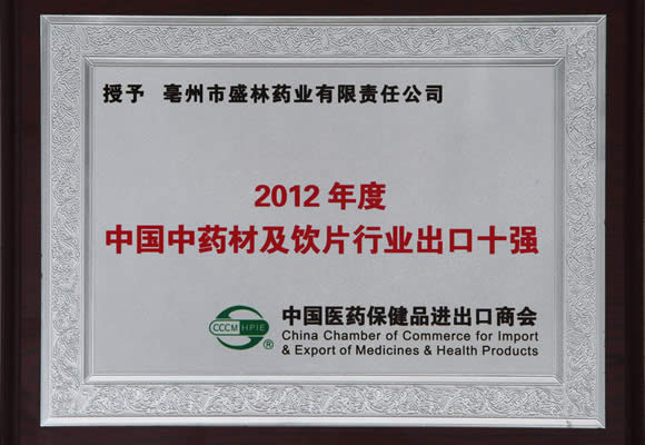 2012 China Top Ten Exports of Chinese Herbal Medicines and Pieces